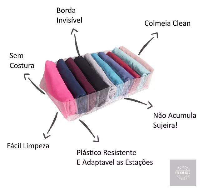 • É PERFEITO para organizar cuecas, body infantil, cintos e outros itens de tamanho semelhante;